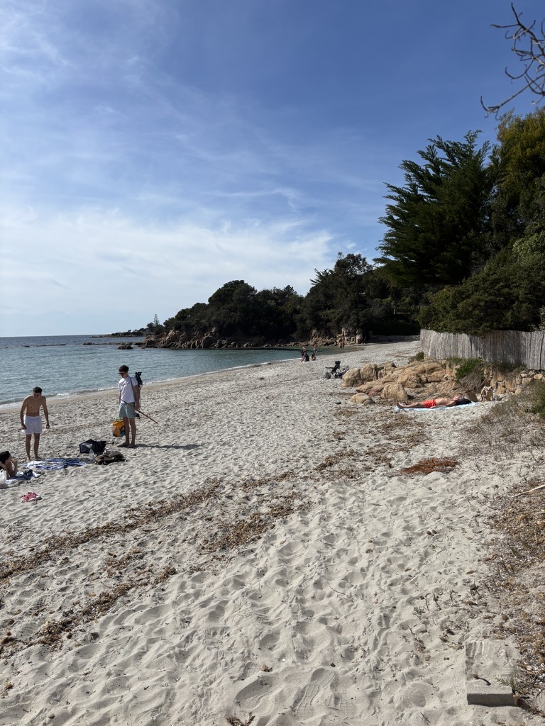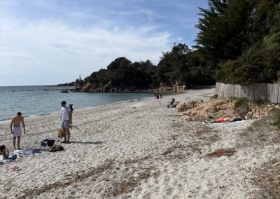 C’est aussi un spot apprécié des surfeurs les jours de houle, et un refuge pour les promeneurs en quête d’authenticité. Le chemin côtier qui la longe invite à la découverte de criques secrètes et de points de vue spectaculaires sur les îles Sanguinaires.